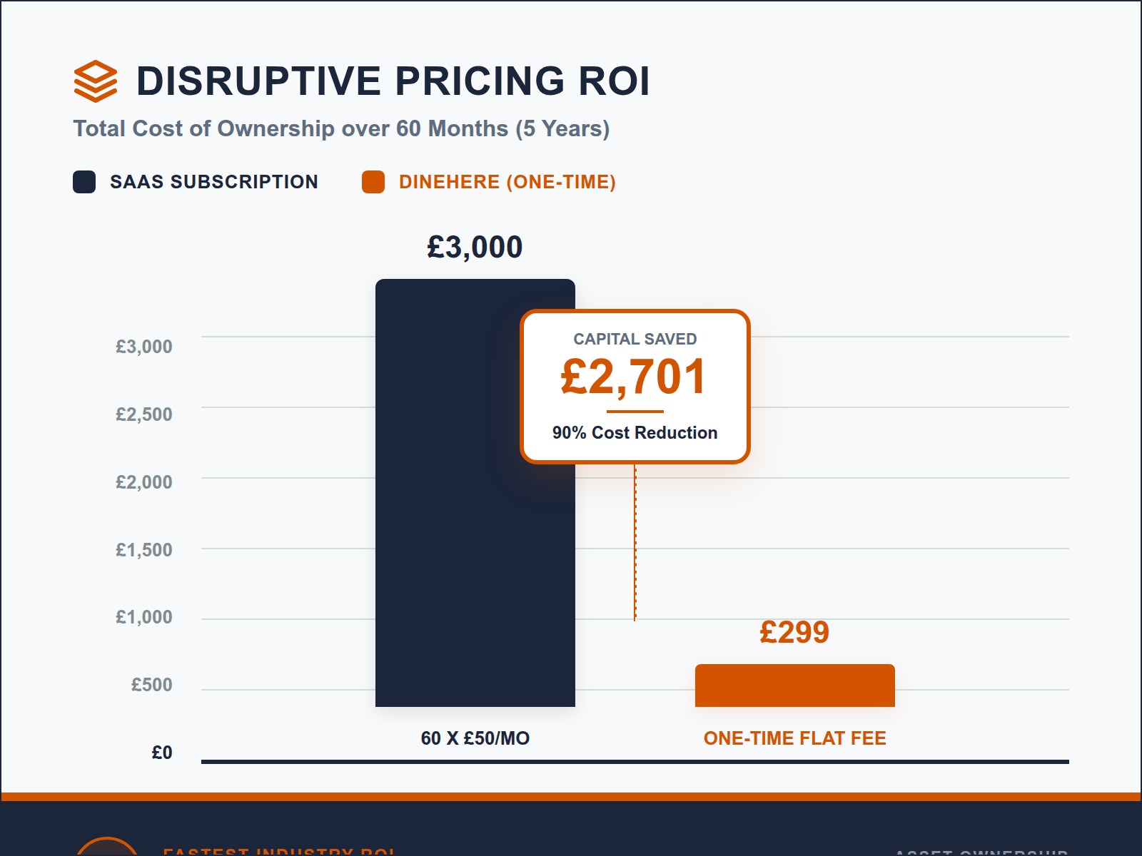Monthly SaaS fees are a quiet drain on thin hospitality margins. When managing multiple sites, those recurring payments for hosting and bookings multiply, eroding the profit from every cover served. Moving to a one-time payment model ensures your overheads stay flat even as your footprint expands.